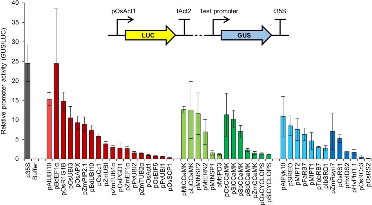 Plant synthetic biology and cereal engineering depend on the controlled expression of transgenes of interest. Most engineering in plant species to date has relied heavily on the use of a few, well-established constitutive promoters to achieve high levels of expression; however, the levels of transgene expression can also be influenced by the use of codon optimization, intron-mediated enhancement and varying terminator sequences. Most of these alternative approaches for regulating transgene expression have only been tested in small-scale experiments, typically testing a single gene of interest. It is therefore difficult to interpret the relative importance of these approaches and to design engineering strategies that are likely to succeed in different plant species, particularly if engineering multigenic traits where the expression of each transgene needs to be precisely regulated. Here, we present data on the characterization of 46 promoters and 10 terminators in Medicago truncatula, Lotus japonicus, Nicotiana benthamiana and Hordeum vulgare, as well as the effects of codon optimization and intron-mediated enhancement on the expression of two transgenes in H. vulgare. We have identified a core set of promoters and terminators of relevance to researchers engineering novel traits in plant roots. In addition, we have shown that combining codon optimization and intron-mediated enhancement increases transgene expression and protein levels in barley. Based on our study, we recommend a core set of promoters and terminators for broad use and also propose a general set of principles and guidelines for those engineering cereal species.